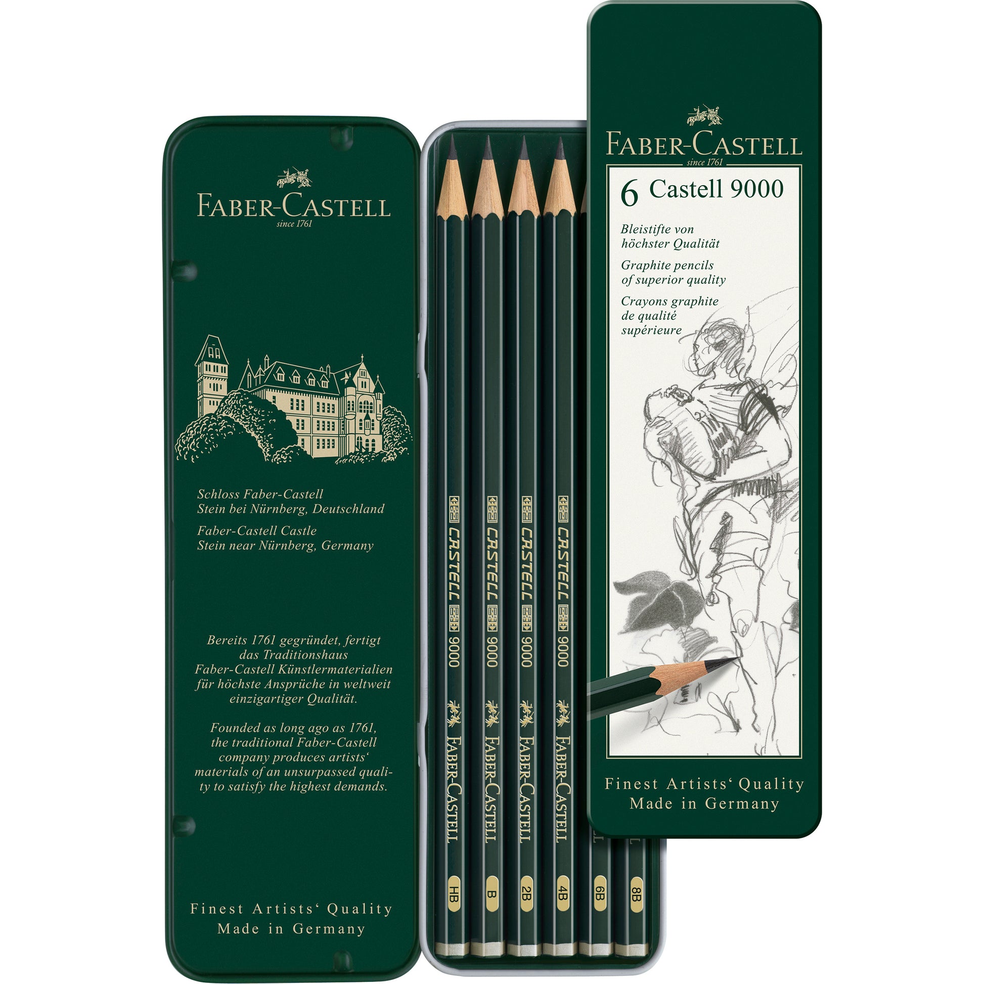 Der Klassiker unter den Bleistiften. Beste Qualität und die feine Abstufung der Härtegrade haben ihn zum bevorzugten Arbeitsgerät von Künstlern und Zeichnern werden lassen. Seine ca. 2 mm starke Graphitmine ist vollständig mit dem Holzmantel verleimt und deshalb besonders bruchgeschützt. Der Schaft besteht aus umweltfreundlichem Lack auf Wasserbasis. Erhältlich ist der Castell 9000 in 16 verschiedenen Härtegraden und macht ihn damit zu einem idealen Bleistift für alle Anwendungen.